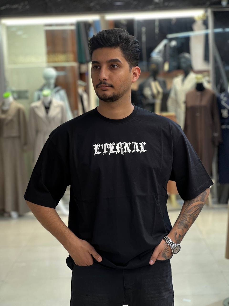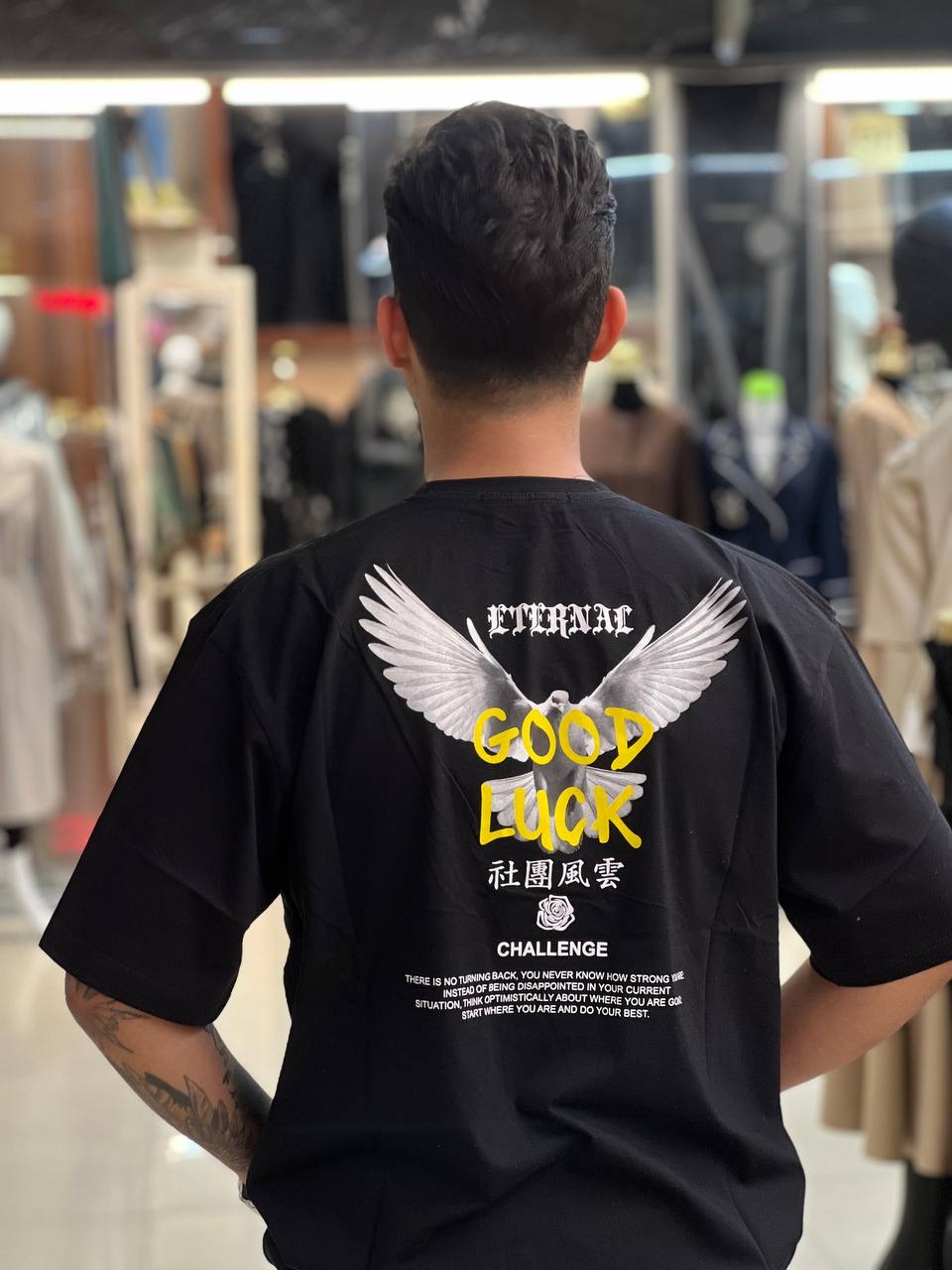 جنس پنبه سوپر نخ دوخت صنعتی تمیز پارچه بدون آبرفت فاقد پلیمر قد کار : ۷۶ راهنمای جدول سایزبندی : سایزL: زیربغل تا زیربغل ۵۳ سایزXl: زیربغل تا زیربغل ۵۷